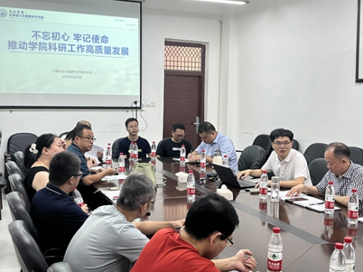 座谈会伊始,彭虎首先作了“不忘初心,牢记使命,推动学院科研工作高质量发展。”为主题的报告,他从ESI学科分析、“互联网+”大赛、社会服务、科研成果奖等四个方面进行了分析和阐述,并强调学院高质量发展,需要发挥教授和博士人才的带动作用,依托高层次人才实力,打造高水平学术团队,推动学院科研工作高质量开展。